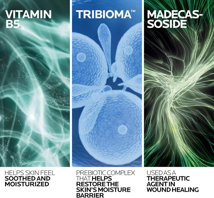 آرامبخش قوی پوست تحریکشده: حاوی 5٪ پانتِنوئیل (پروویتامین B5) که به کاهش احساس کشیدگی، ناراحتی یا قرمزی پوست کمک میکند.