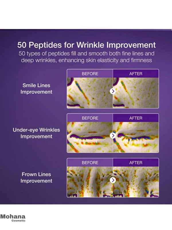 شامل ۵۰ نوع پپتید که به پر شدن خطوط ریز و بهبود الاستیسیته پوست کمک میکنند