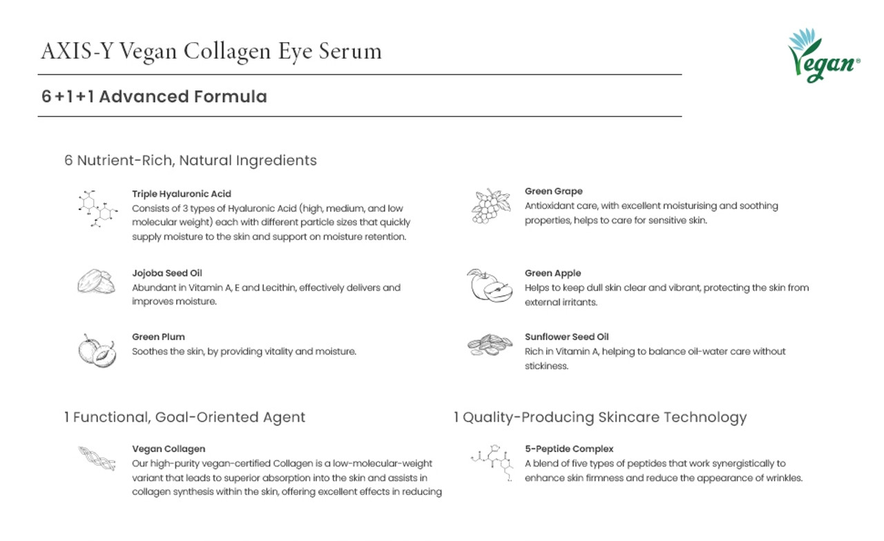 این سرم فرمول شده با ۵ نوع پپتید، ۳ عصاره میوه غنی از ویتامین C و اسید هیالورونیک، آبرسانی و رطوبت قوی را به ناحیه ظریف چشم می رساند و باعث تغذیه و روشن شدن پوست دور چشم می شود. اپلیکاتور چشم منحصر به فرد این سرم مراقبت ۳۶۰ درجه، از رفع چین و چروک گرفته تا حلقه های تیره را تضمین می کند و ماساژی راحت و مناسب حتی برای حساس ترین پوست ها ارائه می دهد.